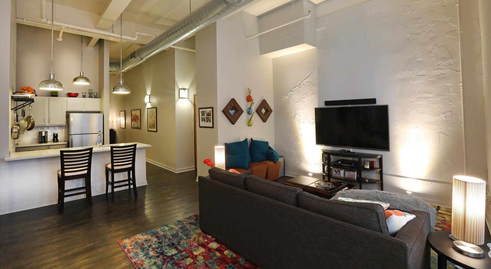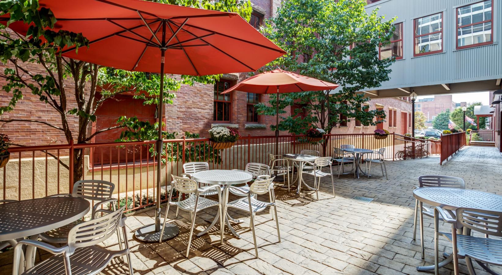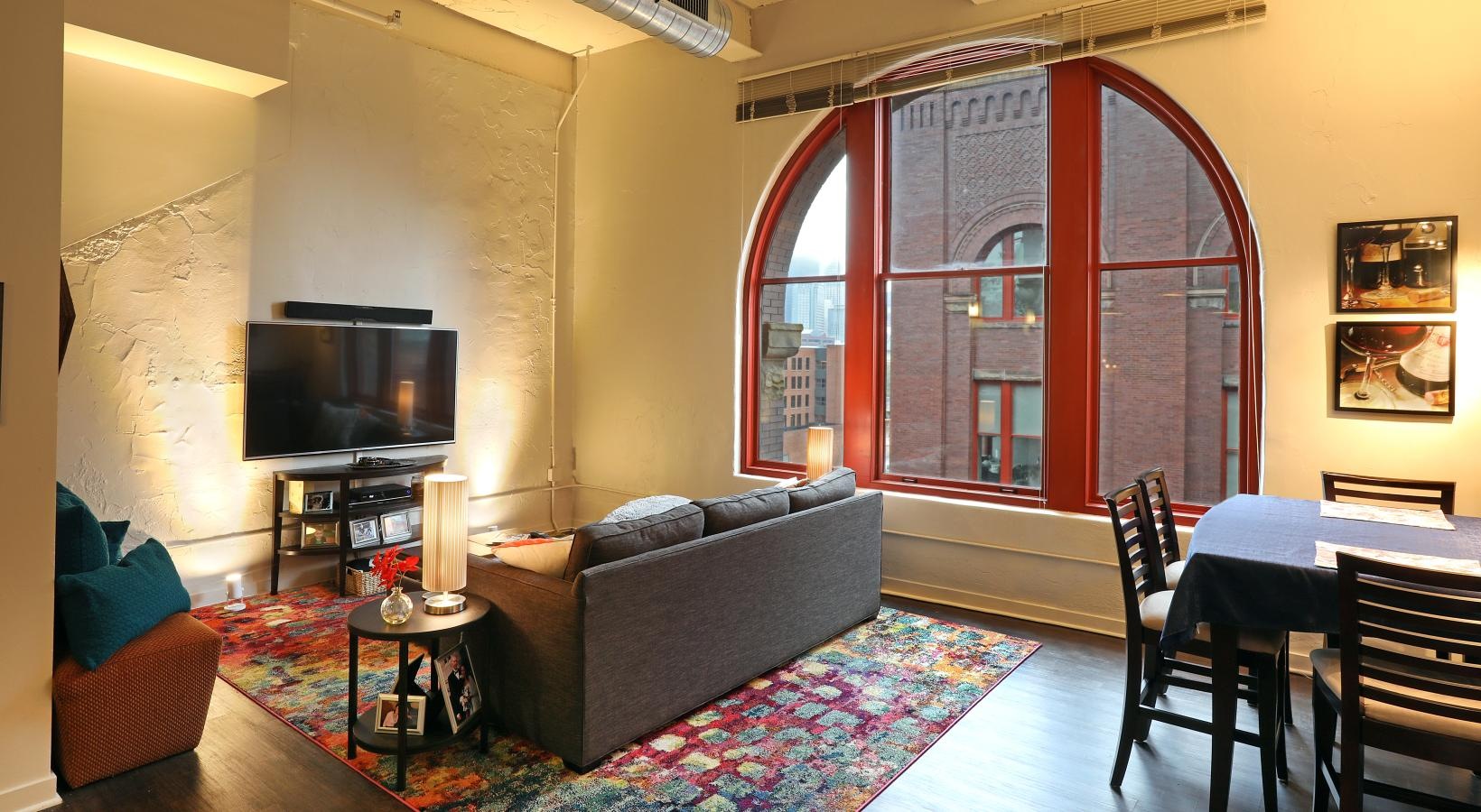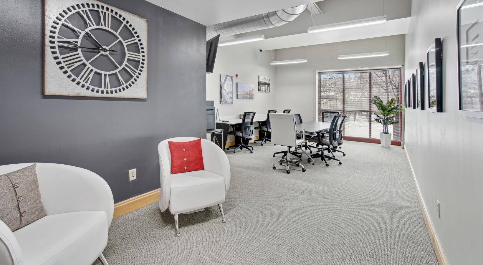 desk set up with laptop near plant exterior of Heinz Lofts group of women together exterior of Heinz Lofts